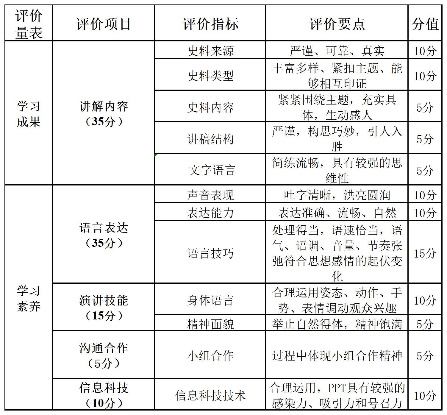 通过对老物件中校史的讲解与分享,能够感受宏观维度下城市与城市生活的变化、上海近现代史的时代变迁、对外开放中浦东的发展与科学技术的发展,懂得校史是区域历史的缩影,老物件是校史的见证者。(历史核心素养:史料实证、家国情怀) 经历以演讲的方式进行校史的展示,能够熟练运用流畅的口语表达进行交、分享。(语文核心素养:语言运用) 经历以小组“拉票”的演说方式呈现问题探究与解决的过程,初步养成合作与表达的关键能力。(跨学科素养:表达交流、团队合作) 经历对其它小组的分享进行倾听与评价,能根据表达的需要,在短时间内组织关键词点评。(语文核心素养:思维能力) 经历使用平板电脑进行观课、评价、打分等具体操作,感受新技术的魅力。(信息科技:数字化学习与创新) |