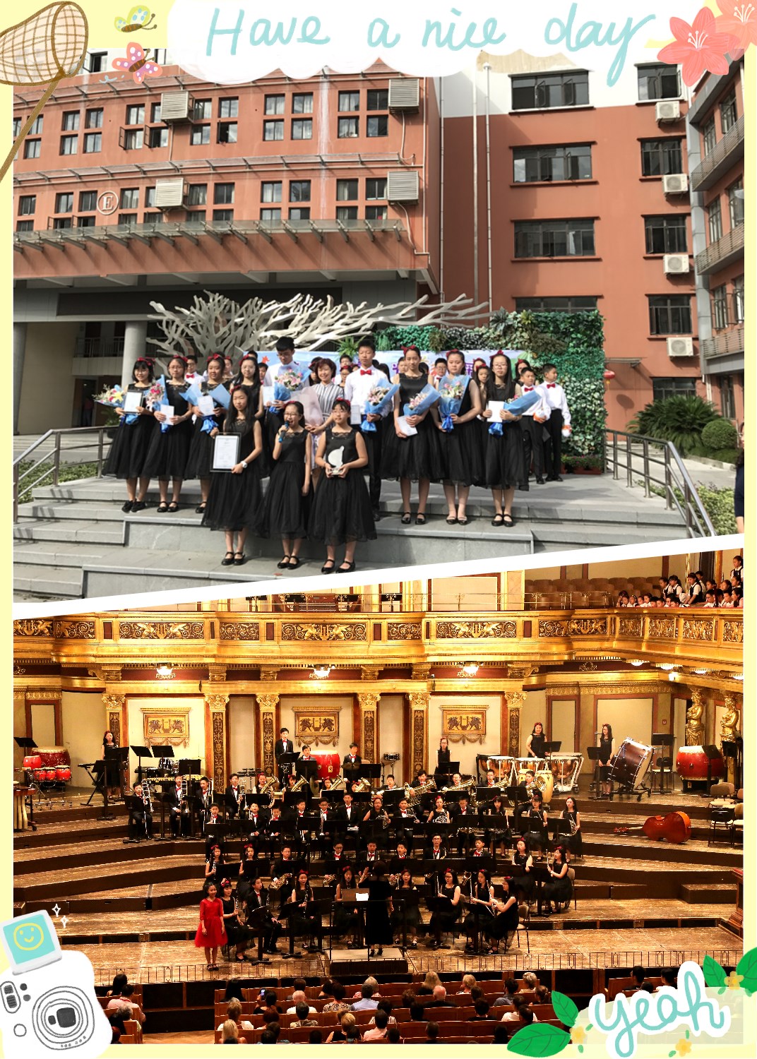 在今天的开学典礼上,王校长用亲切的话语为全体师生送上了寄语。来自我校“金号角”乐团的伙伴们,在远赴维也纳金色大厅开展了交流演出活动,如今他们满载荣誉归来,在升旗仪式上,他们为我们展现了他们获得的殊荣,并将奖杯转赠学校。