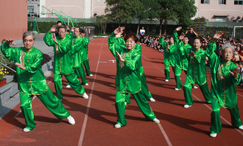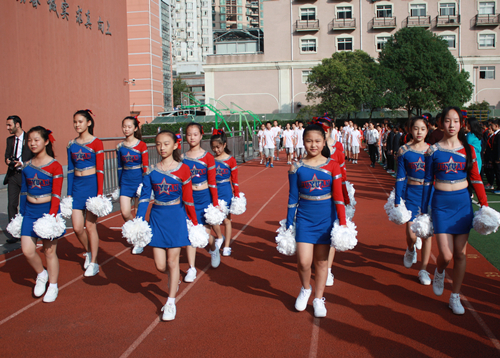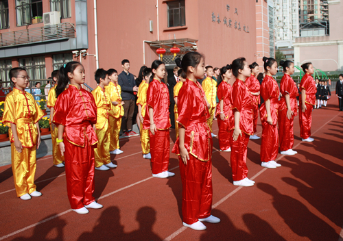 开幕式简单而又隆重,适逢英国爱德华国王六世学校的来访,两校长达十年的友谊,为此次体育健身锦上添花。开幕式上,学校篮球队、足球队悉数亮相;武术、健美操、跆拳道闪亮登场;陆家嘴街道老年拳操也来助兴啦!爱德华国王六世学校的Jeff校长则带给我们热情洋溢的祝贺。