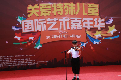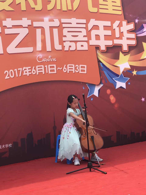 6月2日,上海市洋泾菊园实验学校参加了位于滨江大道南段的“关爱特殊儿童--国际艺术嘉年华”活动。同学们用精彩的演出为自己的节日献上了一份真挚的贺礼。四5中队王艺潼同学的独舞《九儿》;一4班的小乐手戴菲玥为大家带来大提琴独奏